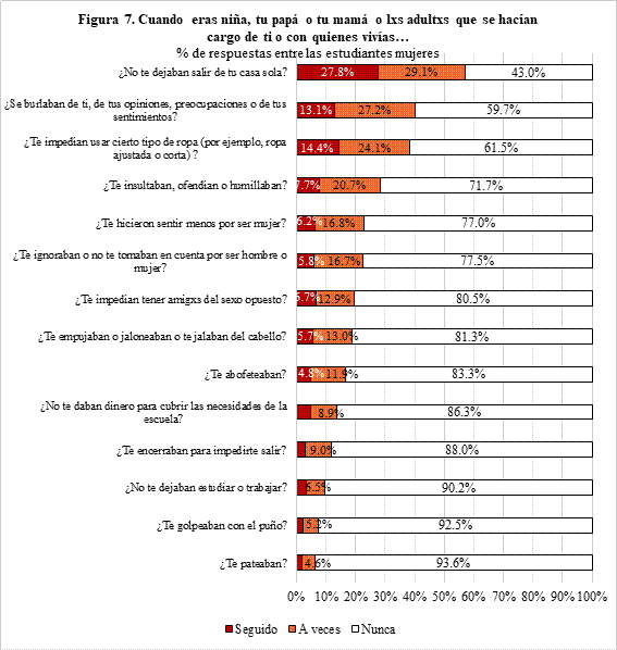 This study presents a descriptive analysis of part of the results from the Encuesta Universitaria de Género, Nuestras Voces (Muñiz Moreno et al., 2022) conducted in 2022 by the University of Guadalajara. The survey aimed to estimate the forms of gender-based violence experienced by students (men, women, and non-binary individuals) in family and educational contexts, considering two reference periods: lifetime and the last 12 months. This article analyzes only the data from women (2,289 high school and 1,697 undergraduate students) in the section on "gender-based violence against women in the family sphere during the last 12 months," which included 17 theoretically preclassified items according to the type of violence (psychological, physical, sexual, and economic). For affirmative responses, follow-up questions identified the perpetrator's relationship and sex, as well as the location of the incident. Findings reveal that 43.4% of female students reported experiencing violence in the last 12 months, predominantly perpetrated by male family members. These forms of violence do not occur in isolation but as structured and normalized dynamics of control and subordination, affecting women's autonomy, mobility, economic security, and emotional well-being. Examples of identified impacts include forced confinement, financial manipulation, threats, and exposure to non-consensual sexual behavior. The prevalence of male aggressors highlights structural gender inequalities, where hierarchical roles legitimize female subordination from childhood. Although this analysis does not distinguish differences by age or educational institution, the study proposes intervention strategies such as preventive programs, psychological support networks, and emotional education training with an intersectional approach. These measures aim to highlight how factors like economic dependence or youth increase vulnerability to family violence.