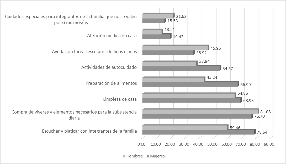 La pandemia por Covid-19 impactó de manera diferente en la vida cotidiana del profesorado de educación superior. A través de una encuesta realizada a 140 profesores y profesoras de diferentes universidades en México, se observa que el trabajo docente irrumpió en sus casas de manera abrupta y sin antecedentes, lo que implicó modificaciones importantes en el arreglo de los tiempos y espacios para cumplir con las labores académicas, domésticas y de cuidado. Las mujeres reportaron mayores complicaciones para conciliar sus actividades cotidianas, en comparación con los hombres, lo cual les creó más conflictos y consecuencias negativas en su salud psicoemocional y física.Descargas