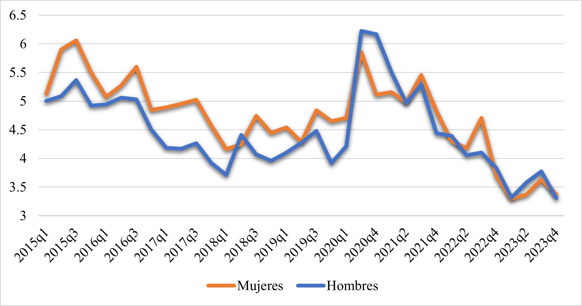 INSTITUTO NACIONAL DE ESTADÍSTICA Y GEOGRAFÍA (2023). Encuesta Nacional de Ocupación y Empleo (2015-2023). Instituto Nacional de Estadística y Geografía.