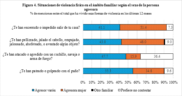 Este estudio presenta un análisis descriptivo de una parte de los resultados de la Encuesta Universitaria de Género, Nuestras Voces (Muñiz Moreno et al., 2022) realizada en 2022 por el Centro de Estudios de Género, la Federación Estudiantil Universitaria, la Cátedra UNESCO Liderazgo, Género y Equidad y el Centro de Estudios Estratégicos para el Desarrollo de la Universidad de Guadalajara, orientada a estimar las formas de violencia de género vividas por estudiantes (hombres, mujeres y personas no binarias) en contextos familiares y educativos, para dos periodos de referencia: a lo largo de la vida y en los últimos 12 meses. En el presente artículo se analizan únicamente los datos de las mujeres (2,289 de bachillerato y 1,697 de licenciatura) en el apartado de “violencia de género contra las mujeres en el ámbito familiar en los últimos 12 meses” con 17 reactivos preclasificados teóricamente según el tipo de violencia (psicológica, física, sexual y económica); para las respuestas afirmativas, se dio seguimiento para identificar el vínculo y el sexo de la persona agresora, así como el lugar de ocurrencia. El 43.4% de las estudiantes reportó haber vivido violencia en los últimos 12 meses, ejercida predominantemente por varones familiares. Estas violencias no ocurren de forma aislada, sino como dinámicas estructuradas y normalizadas de control y subordinación, afectando la autonomía, movilidad, seguridad económica y bienestar emocional de las mujeres. Ejemplos de impactos identificados incluyen encierro forzado, manipulación económica, amenazas y exposición a conductas sexuales no consentidas. La prevalencia de agresores varones evidencia las desigualdades estructurales de género, donde los roles jerárquicos legitiman la subordinación femenina desde la infancia. Si bien este análisis no distingue diferencias por edad o centro educativo, el estudio propone como líneas de intervención la implementación de programas preventivos, redes de apoyo psicológico y formación en educación emocional con enfoque interseccional para visibilizar cómo condiciones como la dependencia económica o la juventud incrementan la vulnerabilidad ante la violencia familiar.Descargas